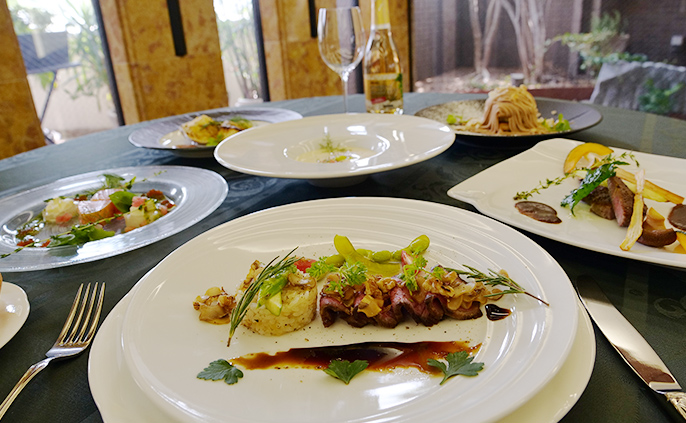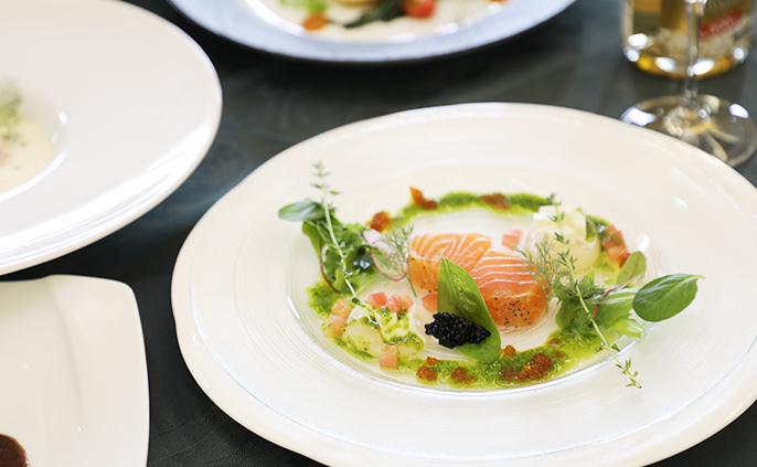 お料理はフランス料理のほか、和食では四季会席や寿し会席などをご用意。